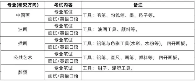 注:中国画、油画、插画、雕塑、公共艺术研究方向考生面试环节请携带作品集。