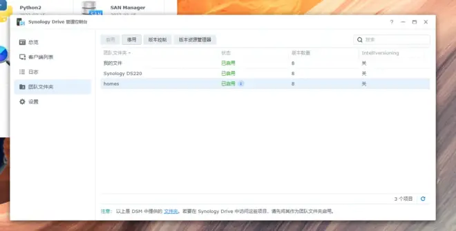 安装完套件后,首先要启用对应的文件夹,如果是多用户也可以在团队文件夹中设置每个用户的权限。
