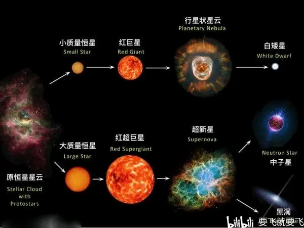 恒星也有人的一个过程,恒星有小质量恒星和大质量恒星。生命的过程也有2种
