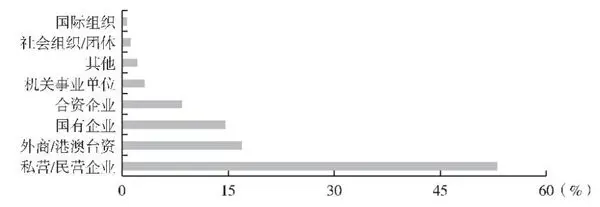 从就业单位类型来看,“海归”人才主要集中在民营企业。《2018 中国海归就业创业调查报告》显示,私营 / 民营企业“海归”人才占比为 53%;外商 / 港澳台资企业“海归”人才占比 17%;国有企业和合资企业“海归”人才占比分别为 15% 和 8%。“海归”人才就职于机关事业单位、社会组织 / 团体和国际组织的比例相对较小,如图 8—2 所示。