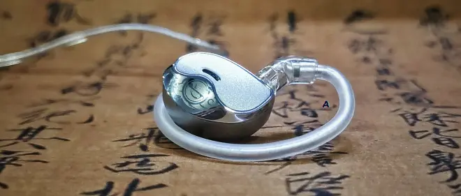 耳机腔体采用全金属锌合金,有点份量,造型比较特殊。磨砂面板并非一马平川,在边缘做了个类似山峦的内凹,铭刻了竹林鸟LOGO和大量云纹,远看像只眼睛,加上光面设计,忽闪忽闪的,有点神秘主义色彩。估计加工难度不小啊,花心思了。