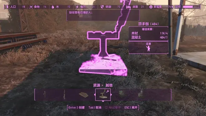 猫、猩猩:猫和猩猩都可以提供幸福度。猩猩提供的幸福度大于猫,但只有在任务“核子武器”后才可以建造对应的牢笼。牢笼的使用可以查看下面的DLC成就《废土工房》。
