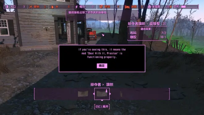 *似乎模组“Unofficial Fallout 4 patch”会导致任务中尚克会叫你去说服一些聚落交出补给的时候,这个模组似乎会导致bug,无法正常触发接下来的任务,关掉相应的模组可以解决。