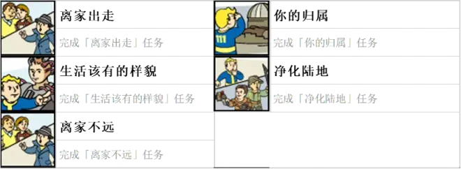 在任务“模范公民”中,会有新的居民进入避难所,在门口旁边的箱子里就会有配套的制服和哔哔小子,将制服和哔哔小子放到加入的居民身上,制服需要按T装备,哔哔小子只要放上去就会自动装备,解锁成就。