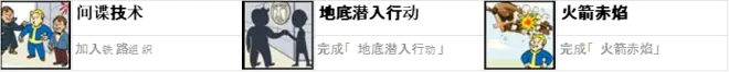 兄弟会:解完“盲目的背叛”,此时丹斯好感度可达最高、丹斯加入时会暂时与兄弟会敌对,下个任务“战术思考”不要解