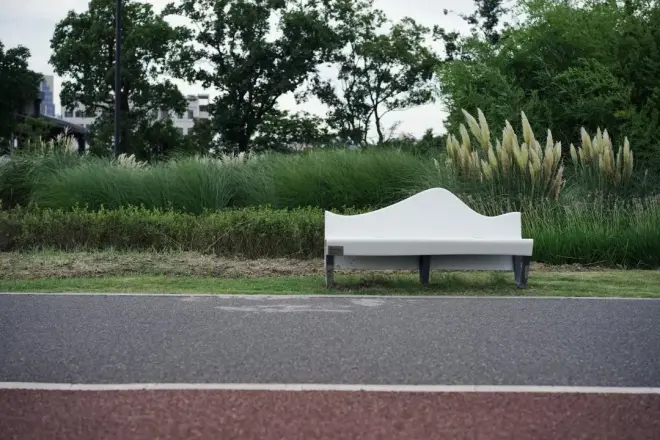 它是全天候24小时开放的,市民无需将可回收物细分,统一投放可以提升市民的投放体验。居民投放的可回收物,经过再生处理,变成环保长椅、乒乓球桌等再生公共设施,回到社区,造福居民。
