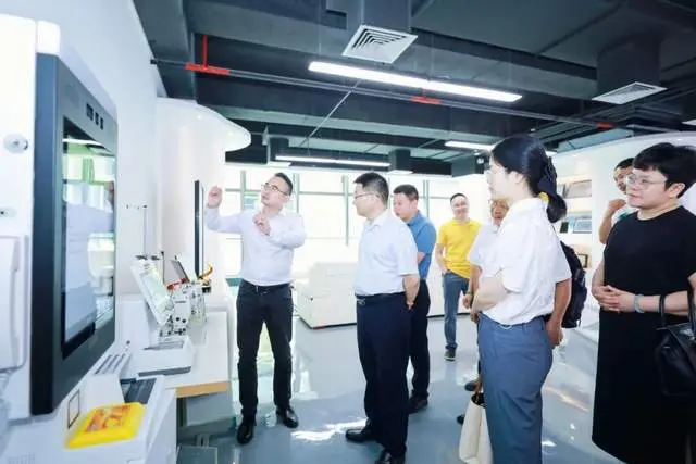 7月3日下午,岳阳县人大常委会主任周峰一行来深考察,县人大常委会副主任彭碧芳,副县长李樱,县政协副主席、县工商联主席王敏等人陪同考察。
