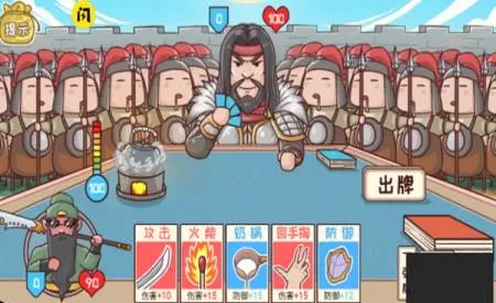 2、玩家需要将华雄的血量打到零才算胜利,可以多使用一些合成牌能够更快打败他。