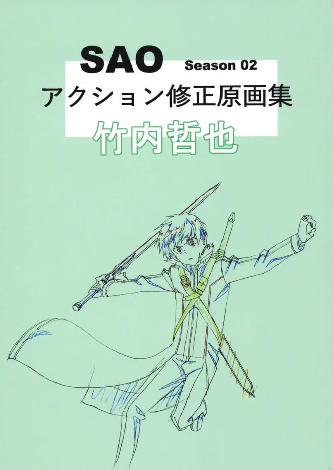 (3)SAO アクション修正原画集(SAO二期动作修正原画集)。同样也是在2019年8月7日的C96和足立慎吾画集一同发售的来自动画二期的动作原画强手竹内哲也的修正原画集。此书包含了竹内哲也在二期进行修正/担任的全部动作原画,共228页,原价3144日元。在C96后也同样在虎穴进行了通贩,现已停止售卖。该书市场价格起伏不定,3000日元到6000日元不等。