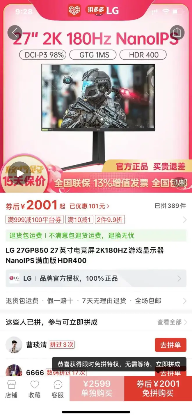 3月31日 LG27GP850显示器2000,罗技G502X鼠标499,海信touch lite阅读手机749!