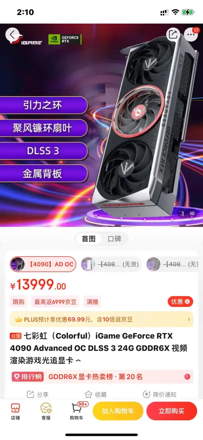 【13999】七彩虹(Colorful)iGame GeForce RTX 4090 Advanced OC DLSS 3 24G GDDR6X 视频渲染游戏光追显卡