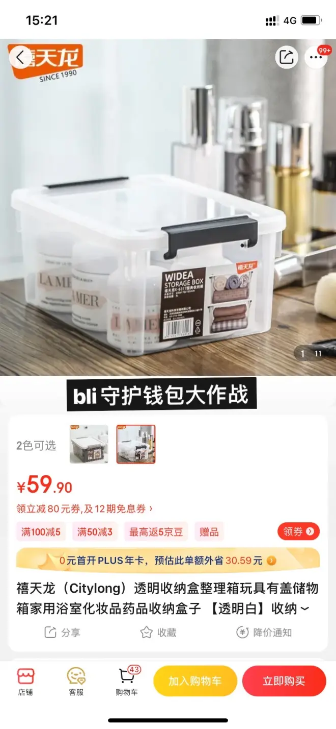 禧天龙(Citylong) 透明收纳盒 药箱23*17*10CM 3个装【26.9】