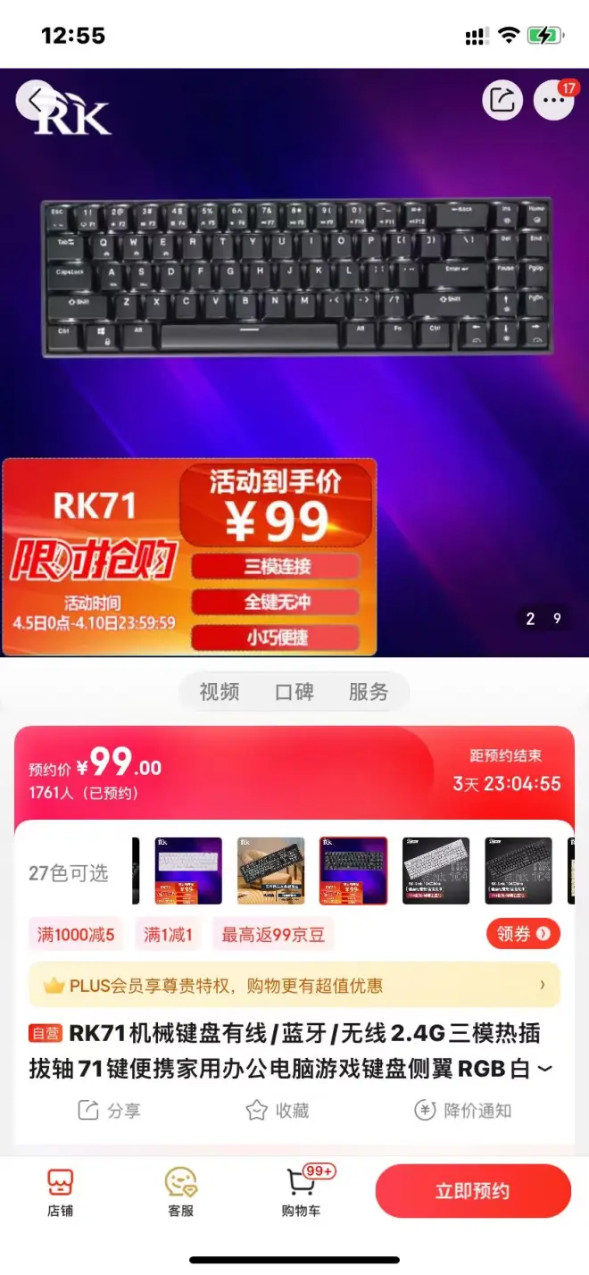 【99】RK71机械键盘三模热插拔轴71键青轴