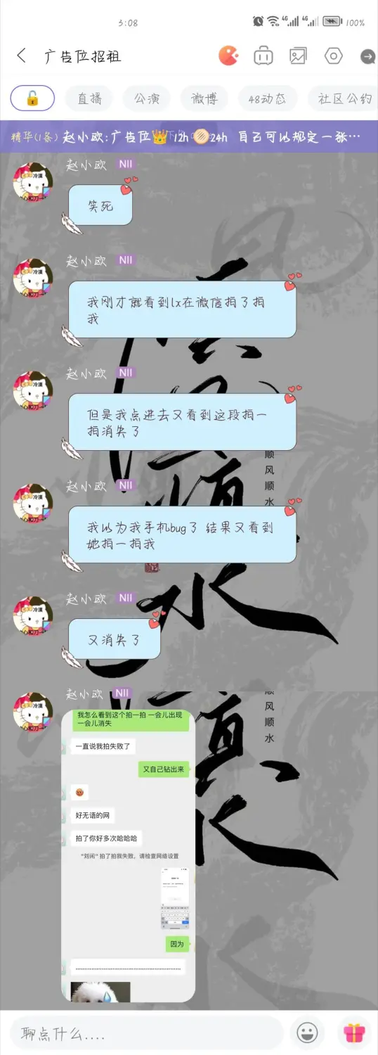 ps:整理起来才发现,截止到3月6日她们拍档一个月,她们的口袋互动居然有这么多,我整理了将近五小时,我还漏了一些,但只能插入刚好100张图片。本来还想整个小番外,只能之后另起新篇了。