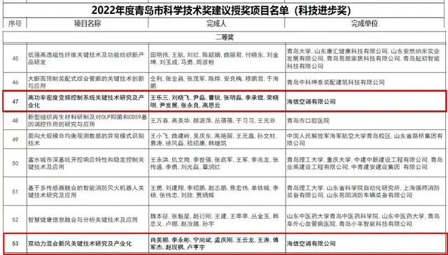 同月,“2022年度青岛市科学技术奖建议授奖人员和项目”揭晓,“高功率密度变频控制系统关键技术研究及产业化”项目亮相榜单。
