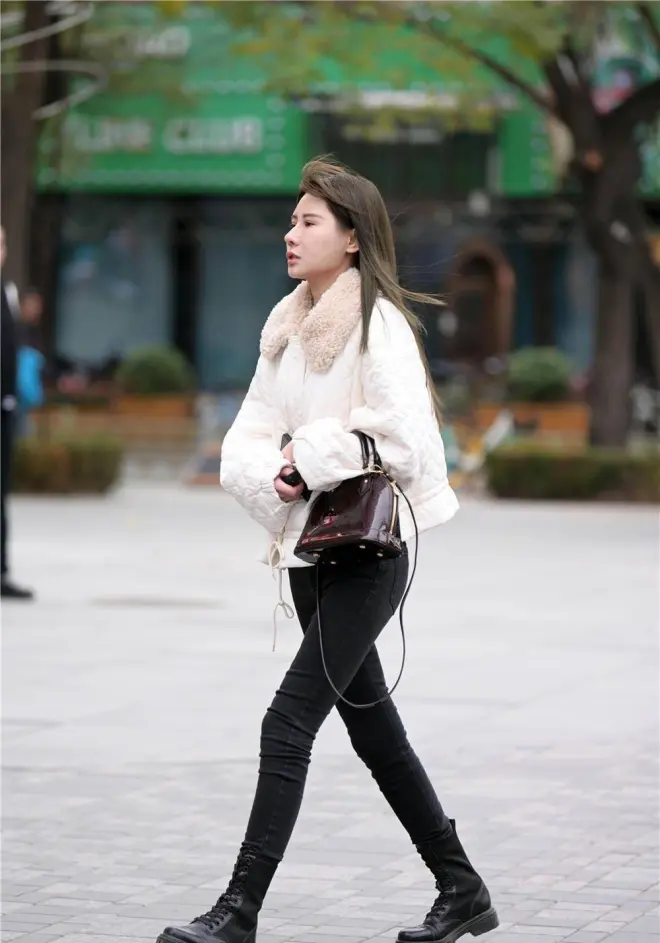 春天去店里的女孩子,更细腻地适应自己,不是因为不怕冷,而是因为她们真的爱美,值得学习。每个女孩都希望自己的生活会更有趣。她们学会合身,也学会化妆,这位女士选择了黑色紧身牛仔裤。看得出来,妹子的腿又细又直,比例又细腻,要搭配起来就容易多了。脚上是一双黑色马丁靴。纯黑色很好看,白色羊羔毛领羽绒服看起来很火。