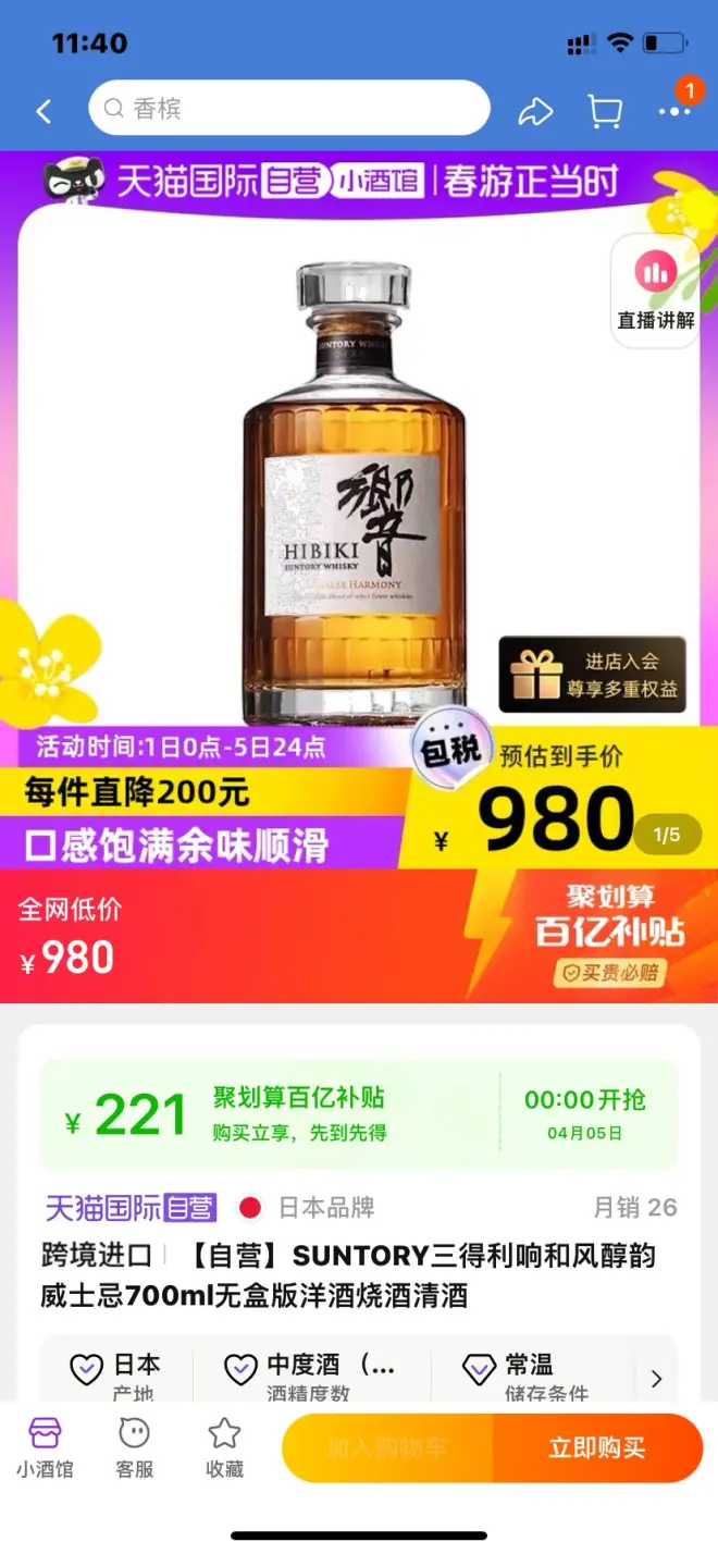 【759 5日0点开抢】SUNTORY三得利响和风醇韵