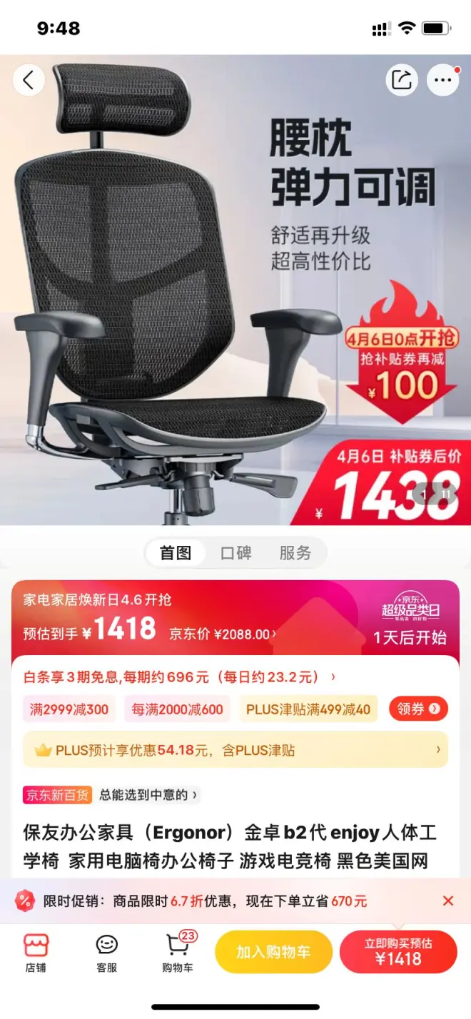【1318 6日0点】保友办公家具(Ergonor)金卓b2代