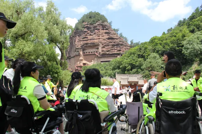 7月25日,天水希望之家组织15名脊髓损伤者和18名爱心志愿者共同来到天水伏羲庙,从互动轮椅友谊赛开始进行快闪舞蹈《早安隆回》,学习石窟历史,体验景区无障碍,此次活动行程共跨度45公里。