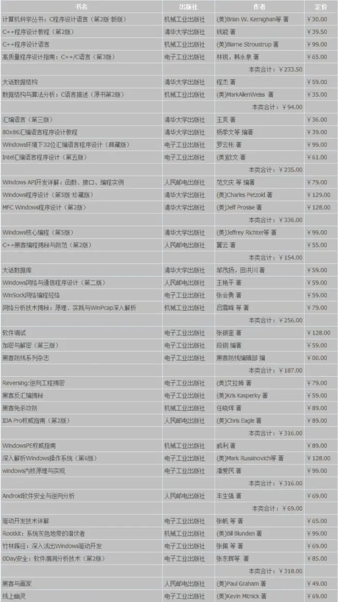 所有书籍共计 2632.50 元,大概 15000 页。这些内容脱产自学的话至少需要 3 年。边工作边自学的话,如果工作内容不能与学习内容高度重合,那么至少需要 5 年以上时间。