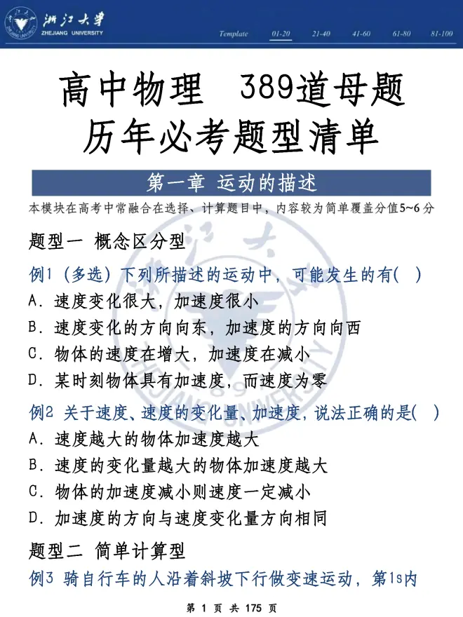 高中物理 389道母题!!历年必考题型清单~90%命中率
