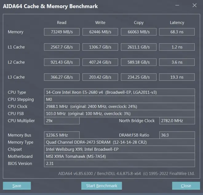 14c28t,全核2.8g,ddr4 2400 8g *4