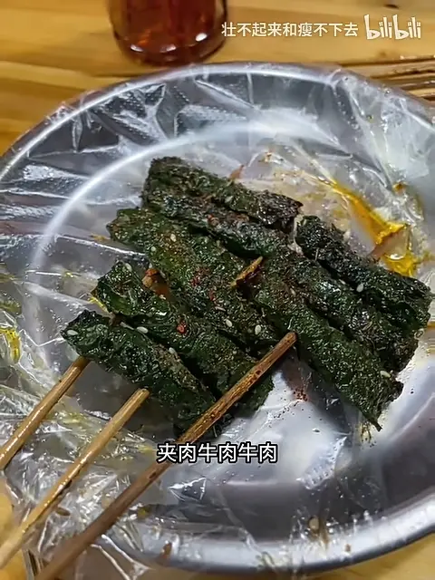5.夹牛肉,夹娄叶和牛肉夹一起有种特殊的味道,还有点甜