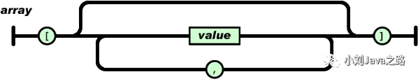 数组是值(value)的有序集合。一个数组以“[”(左中括号)开始,“]”(右中括号)结束。值之间使用“,”(逗号)分隔。如图所示: