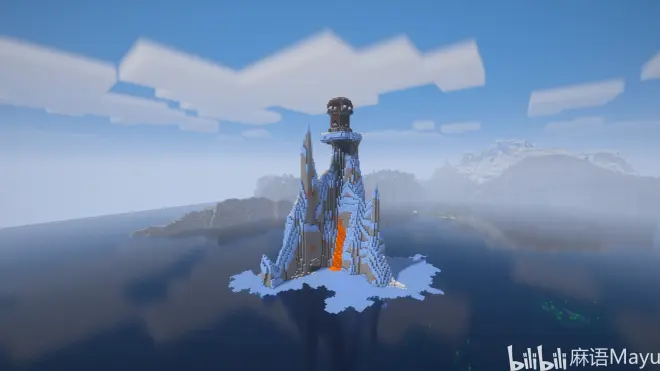 一个海湾内的岛屿,岛上有漂亮的雪山和两个村庄,岛屿南部地下有古城
