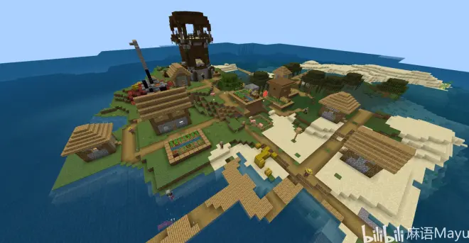 哨塔、女巫小屋、村庄、废弃传送门全都挤在一个小岛上