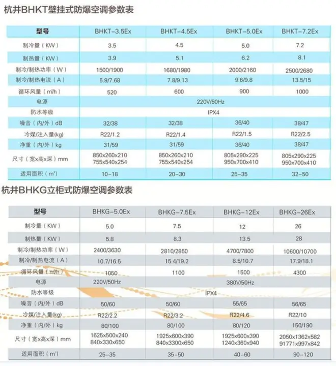 防爆空调规格参数表