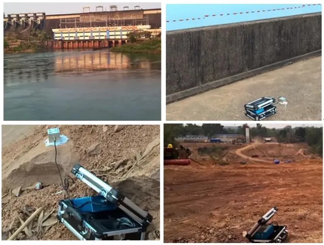 四、2015年3月,受中国水利水电第十五工程局的委托,我司设备参与了老挝南俄湖水电站机组扩建项目爆破振动监测,重点监测坝体上及机房安全。