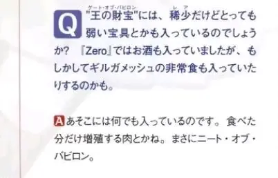 A:那里面啥都有放。会增殖出所需食用份量的肉等等。简直是NEET of Babylon。