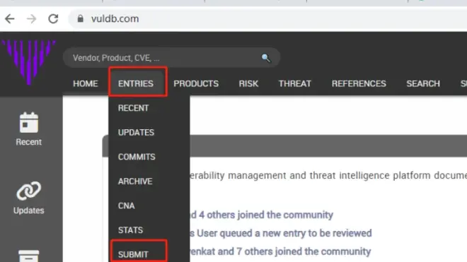 这里申请cve的地址为: https://vuldb.com/ 先申请注册一个账号登录。