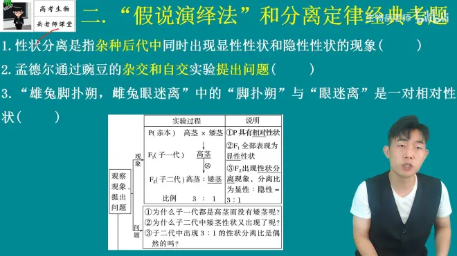 1.遗传因子2.成对存在3.假说 4.随机结合(4种)