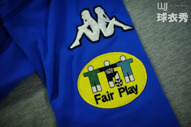 球衣右臂为2000欧洲杯的徽章:一个抽象的足球运动员带球的形象,球员身上的球衣巧妙的将东道主比利时、荷兰两国国旗结合在一起。三颗星代表着意大利在1934、1938、1982夺得的三个世界杯冠军。
