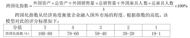 跨国化指数从经济角度衡量企业融入国外市场的程度。根据指数的高低,该模型对此的评分标准如下: