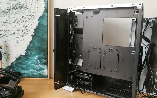 机箱背部有两个2.5英寸硬盘位,一般都是挂载SSD,其实我更喜欢它设计在前面。