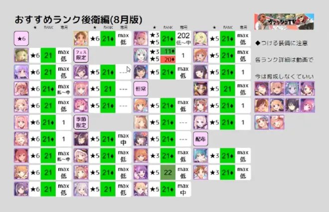【公主连结】日服21年8月Rank表转载