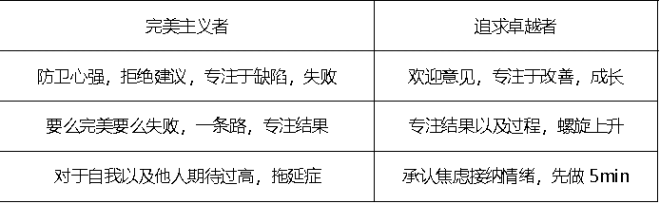 良好的习惯:将要养成的习惯具体为非常明确的行为,在固定时间执行,并让行为受内在价值驱动。例如:写日记,运动,固定时间睡觉,冥想。养成习惯需要消耗大量认知能量,在21-30天内,只要求自己养成1-2项习惯,而且,要有足够大的动力去执行它。养成习惯离不开明确的目标,把目标放在“拉伸区”(Stretch zone)。