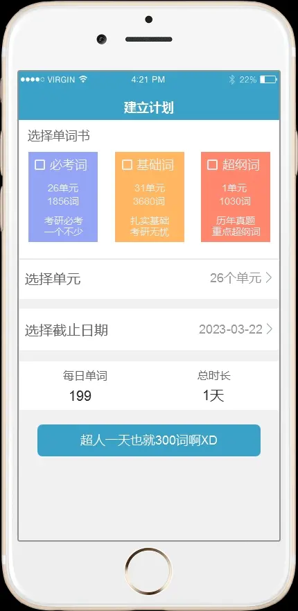 背过《红宝书》的必考词部分,可以说你就掌握了80% 的考研词汇。这套书释义即详细又准确,词汇量全,囊括了所有大纲词汇。尤其是考点和重点非常突出,层次分明,记忆方法实用有效。无论是词义、例句⋯还是配套的练习题、抗遗忘循环记忆规划表,App都能有效地帮助你攻克考研词汇。 红宝书在手,考研无忧!