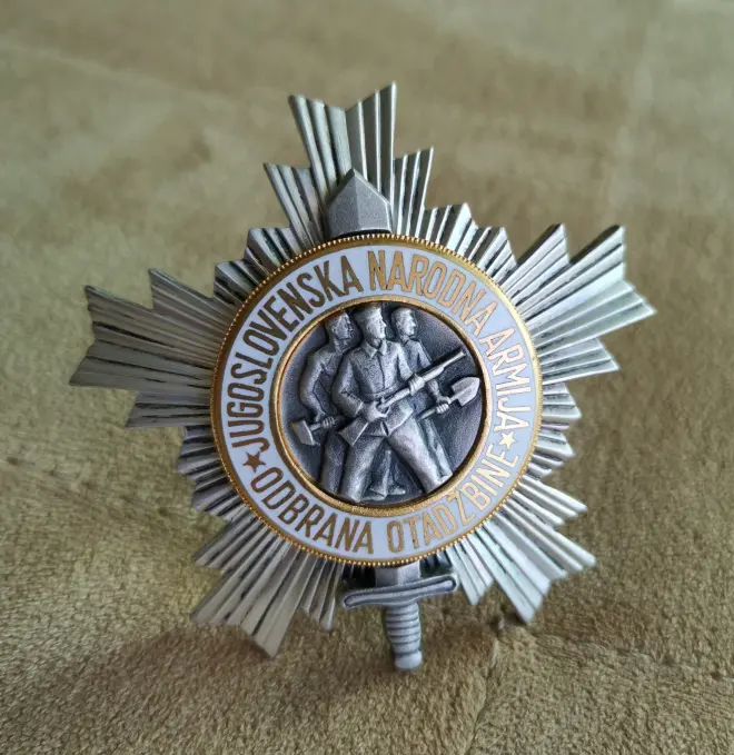 授予为武装部队提供服务,并在和平时期成功指挥的人。三级人民军的实发数量仅为45384枚,是900银制,很大个,份量很足,(左边这枚75.3g右边这枚74.2g)个人觉得是南章里性价比较高也很好看的一款了。
