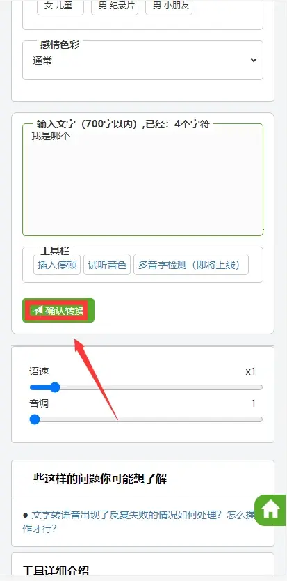 在打开的页面中,在输入框中输入想要转换的文字,也可以一键粘贴,设置自己需要的配音,以及感情色彩