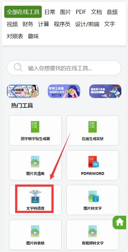 我们打开浏览器搜索记灵,打开其网站,在首页上找到并打开文字转语音选项。