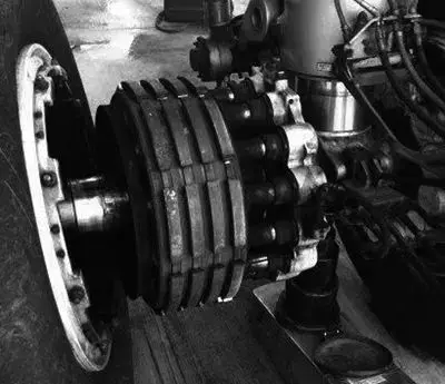 机轮刹车系统启动后,旋转盘与定盘相互推压,阻止机轮滚动,机轮与地面剧烈摩擦产生阻力,实现制动刹车。