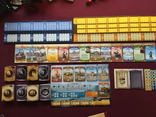 游戏板:每位玩家都有一块独立的玩家游戏板,用于展示自己的文明进程,包括科技、建筑、奇迹、领袖等。