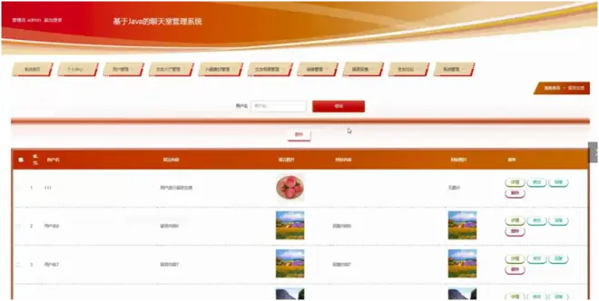 管理员点击留言反馈;在留言反馈页面输入用户名、留言内容、留言图片、回复内容、回复图片等信息,进行查询或删除留言反馈等操作;如图5-12所示。