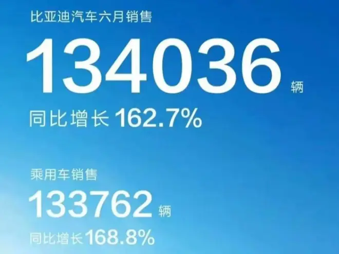 1-6月累计销售超64万台,比亚迪一只脚已经迈进年销百万台俱乐部