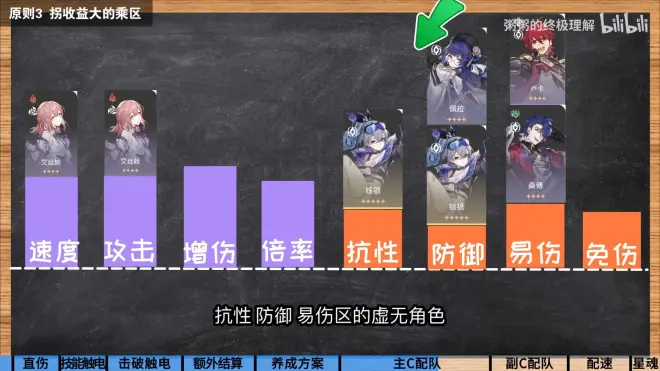 - 也可以选择拐在敌人抗性、防御、易伤区的虚无角色,例如:银狼、佩拉、卢卡、桑博。