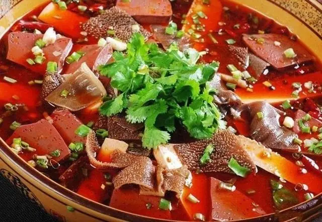 第三道美食是毛血旺。毛血旺是一道火锅类美食,它的特点是汤汁辣香鲜美,里面有各种内脏和肉类,味道非常鲜美。毛血旺在重庆很受欢迎,也是很多人的最爱。